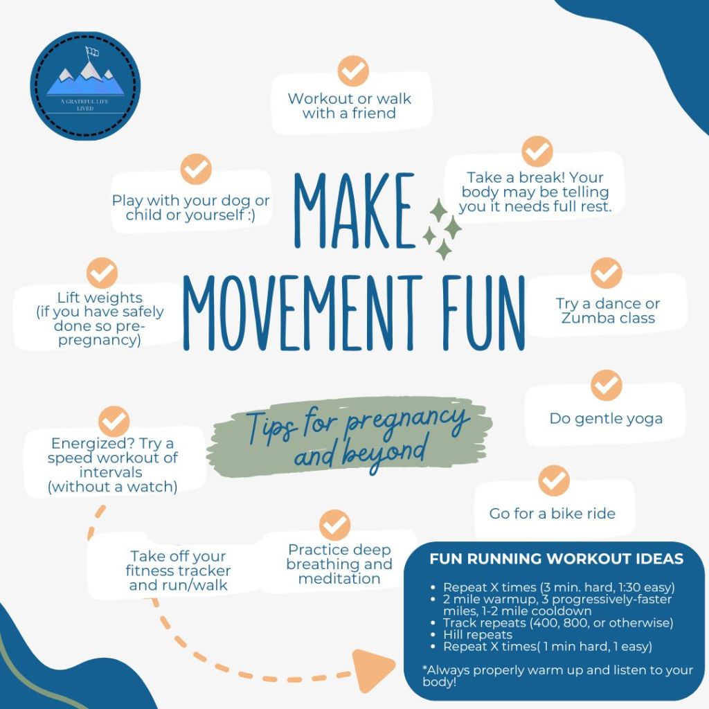 Nowadays, I am meditating on gratitude for what God’s allowed my body to do—for the first time, this is largely not performance/athletically based. My pace has slowed a bit (although I feel a zillion times better than the first sixteen weeks of pregnancy). My body is changing in ways that aren’t speed-oriented. My energy is less abundant. What’s also true is that I am allowed to experience different seasons of life with my body and movement. If running sounds too hard, I go to a spin class or try Zumba. If I feel like I’m dragging myself to get to the gym, I use coping skills and choose rest over movement.